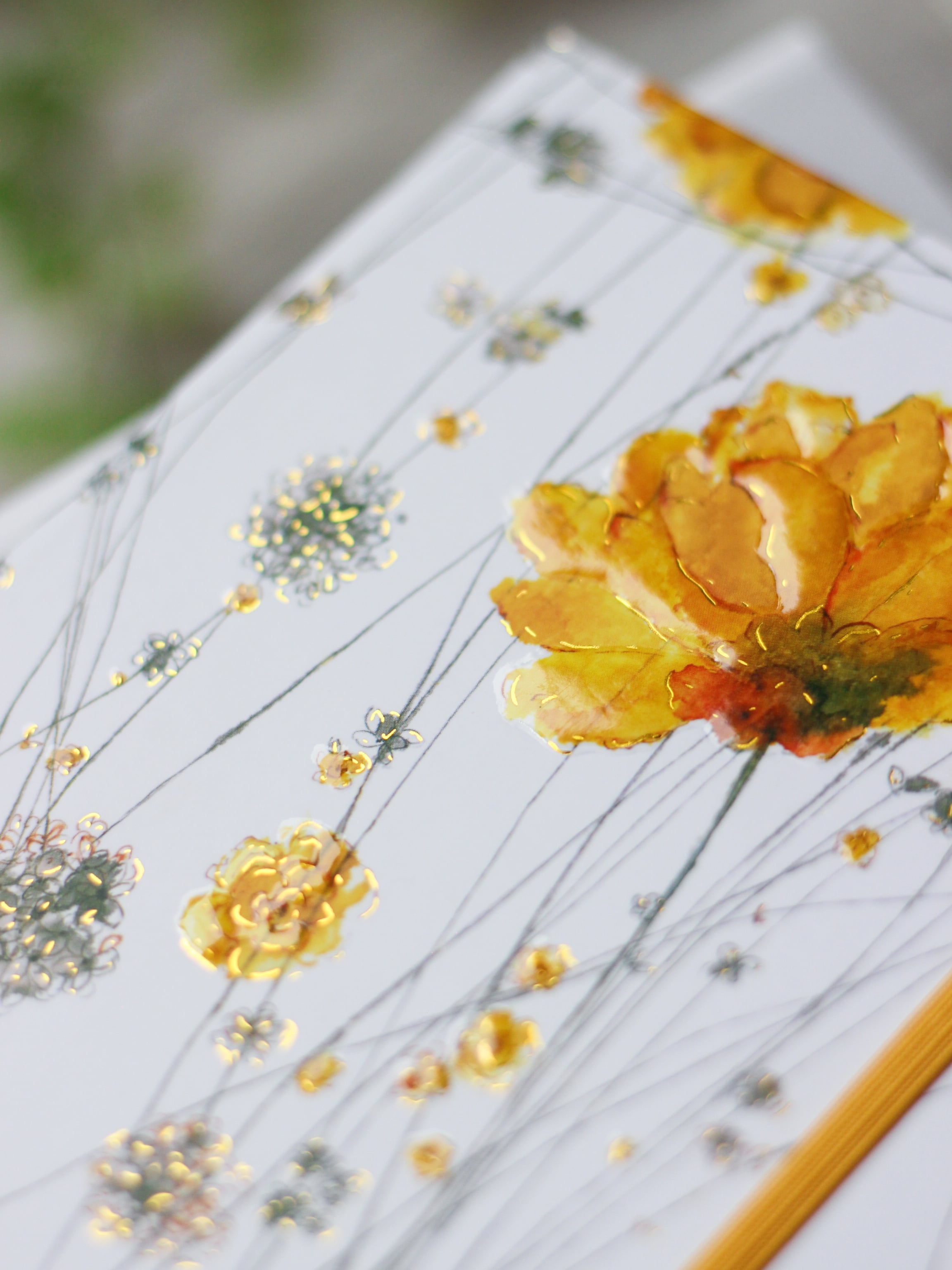 お花の輪郭にはゴールドの箔押しがあしらってあり